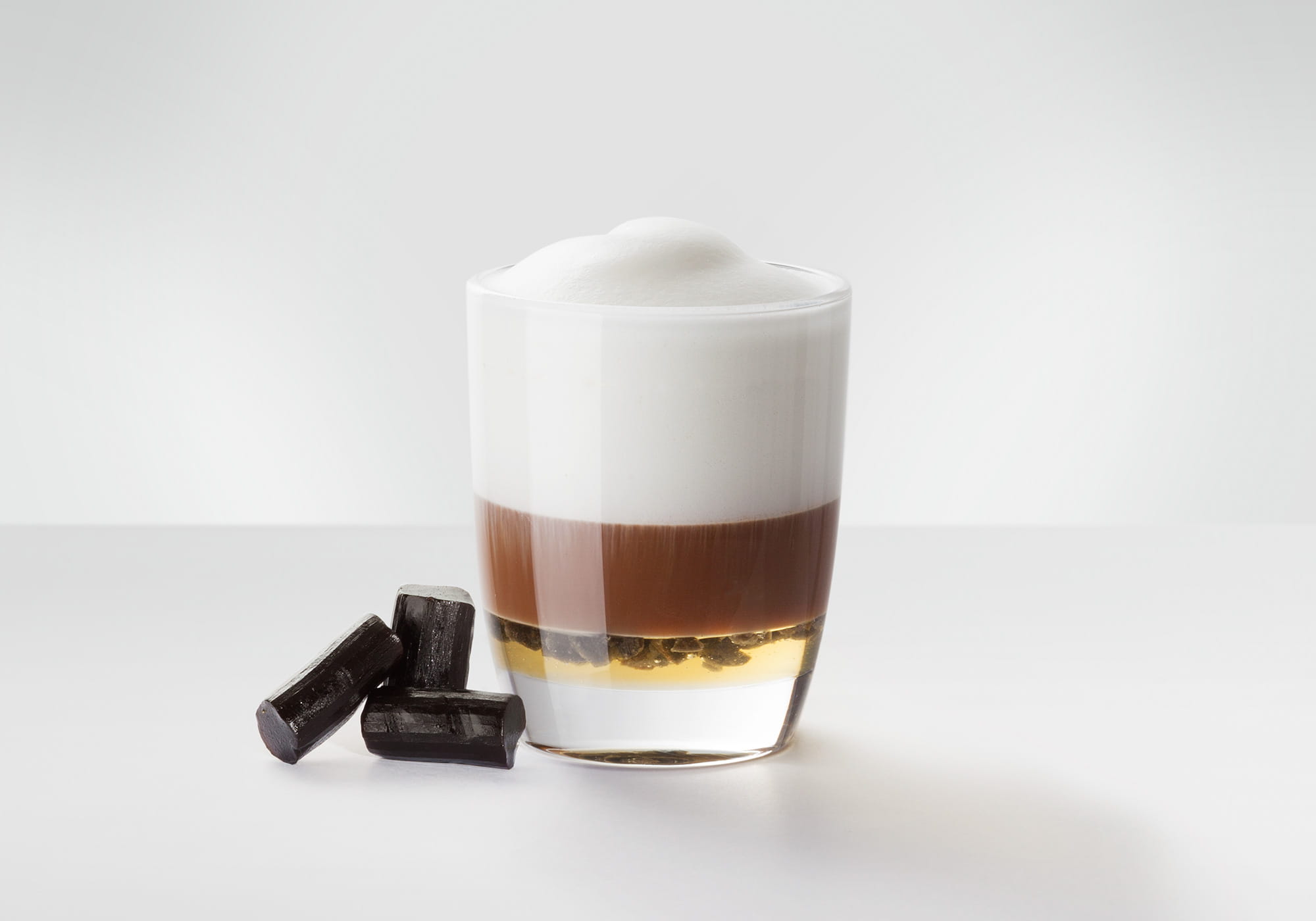 Remueva la especialidad de café con cuidado antes de disfrutarla y espolvoree un poco de regaliz en polvo sobre la espuma de leche.